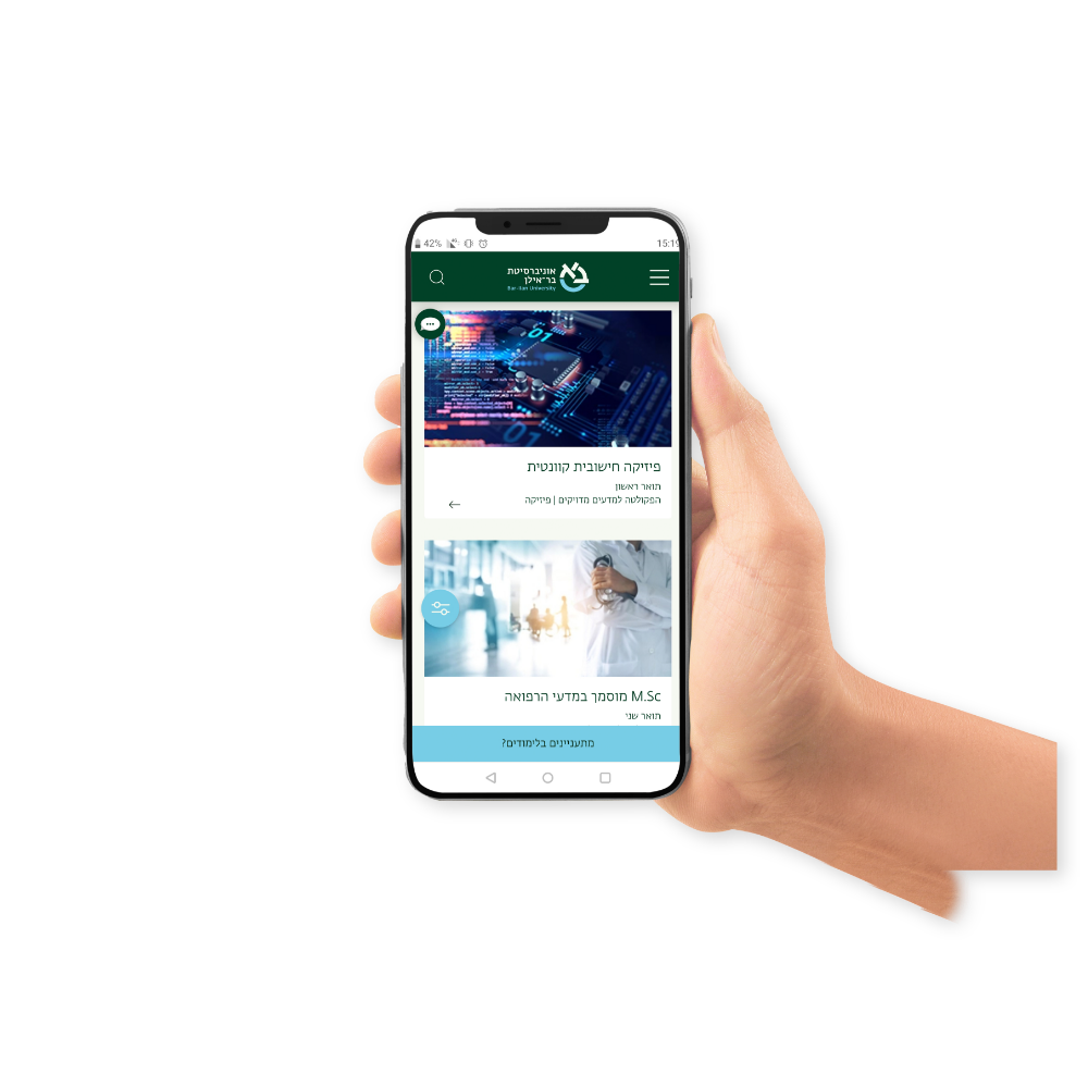 קטלוג תוכניות הלימוד הדיגיטלי של אוניברסיטת בר-אילן מאפשר לך לבחור ולאתר מתוך מגוון רחב של תחומים, בדיוק את תוכנית הלימודים שמעניינת אותך.נכנסים לקטלוג ומסננים בחיפוש חופשי, או לפי תחומיעניין, פקולטות, מחלקות וסוג התואר.